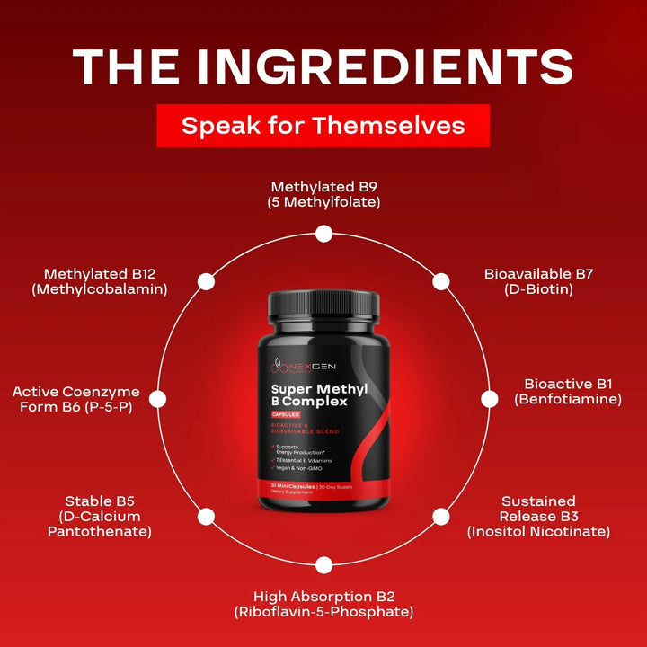 Este no es otro suplemento genérico del complejo B. Es una fórmula de próxima generación, diseñada para quienes exigen lo mejor. Con ingredientes metilados como el folato 5-MTHF y la metilcobalamina B12, tu cuerpo los absorbe de inmediato, sin pérdidas. Olvídate de las vitaminas que pasan por tu sistema sin hacer efecto. Estas moléculas actúan como llaves maestras, desbloqueando niveles de energía y bienestar que creías imposibles.