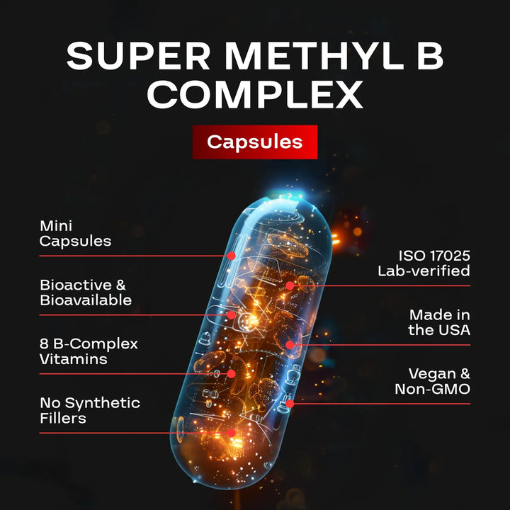 - Complejo B metilado completo con 5-MTHF y metil-B12 para absorción inmediata 🎯