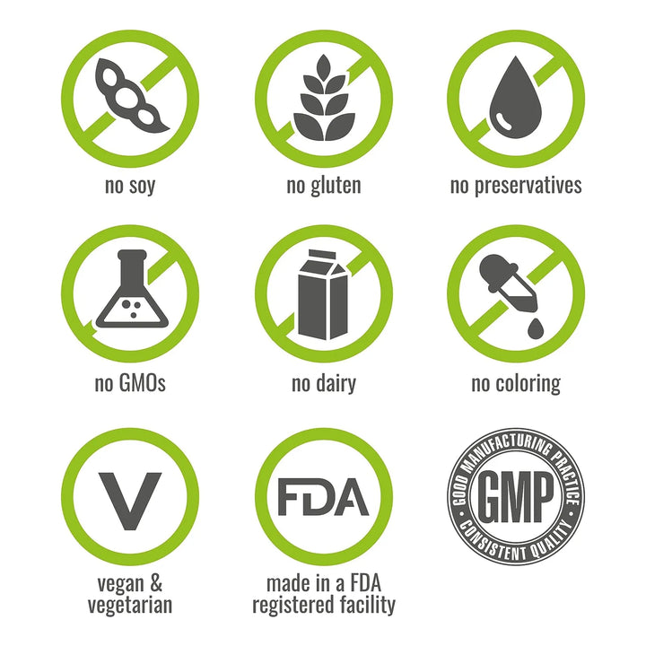 - Pureza Garantizada: Sin OMG, gluten, soja, lácteos o cualquier ingrediente que no quieras en tu cuerpo.