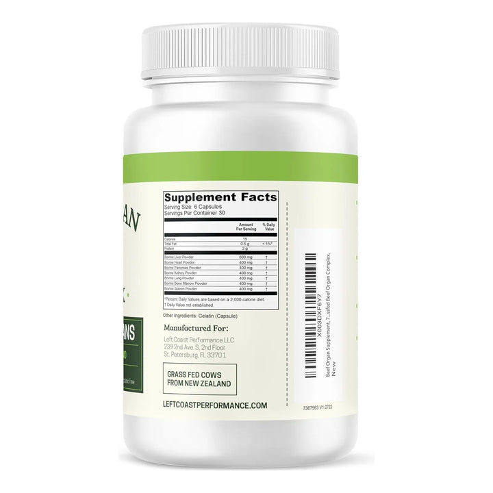 Complejo De Órganos De Carne De Res Alimentado Con Pasto: Energía y Salud en Cada Cápsula