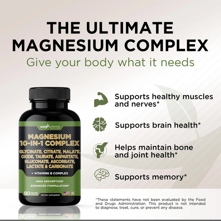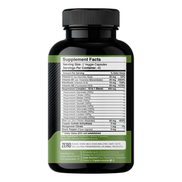 ¿Sientes que te falta energía durante el día? ¿Te cuesta conciliar el sueño o recuperarte después del ejercicio? El Complejo de Magnesio 10 En 1 de Gade Nutrition es la solución que tu cuerpo necesita. Diseñado para brindarte un apoyo integral, este suplemento combina 10 formas de magnesio altamente biodisponibles, junto con vitaminas B esenciales, para revitalizar tu cuerpo y mente desde adentro.