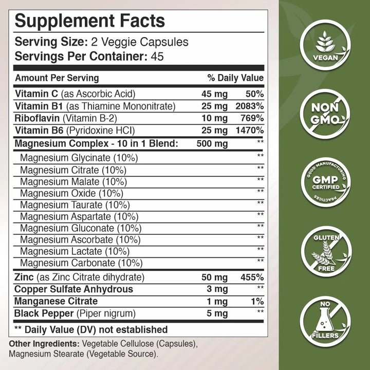 - Fórmula 10 en 1 con las formas más biodisponibles de magnesio para máxima absorción 💫