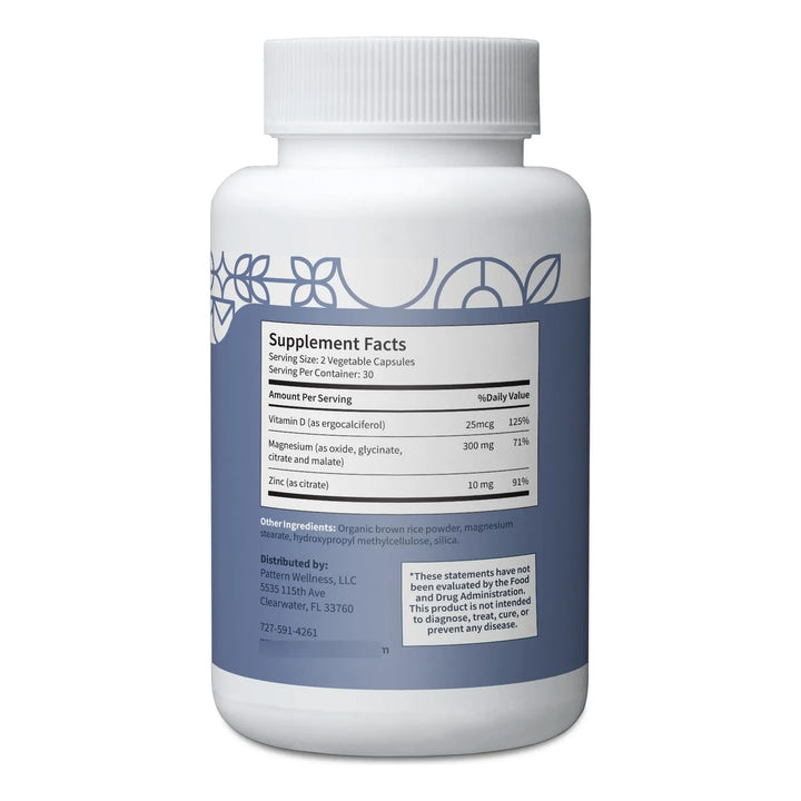 Nuestra fórmula combina magnesio, zinc y vitamina D para actuar sinérgicamente en tu cuerpo. El magnesio regula neurotransmisores que promueven el sueño y reducen el estrés, mientras el zinc fortalece tu sistema inmunológico. La vitamina D mejora la absorción del magnesio, potenciando sus beneficios en músculos, huesos y energía.