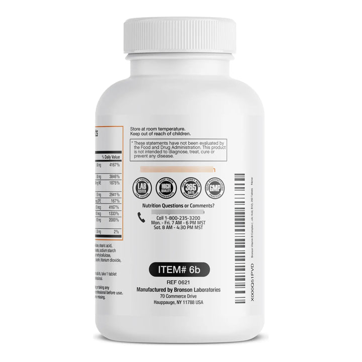 ¿Sientes que el cansancio te gana la batalla cada día? ¿Tu metabolismo parece ir más lento de lo que te gustaría? Imagina despertar cada mañana con la energía necesaria para conquistar tus objetivos, sintiéndote revitalizado desde el primer momento. El Complejo de Vitaminas B de Bronson es tu aliado perfecto para lograrlo. Con 250 tabletas de potencia superior, este suplemento está diseñado para apoyar tu energía, metabolismo y bienestar general, respaldado por más de 60 años de confianza y resultados probados.