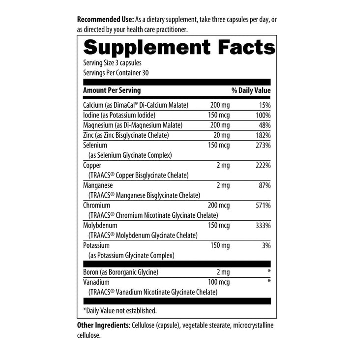 El malato de magnesio apoya la producción de energía a nivel celular, mientras que el cromo ayuda a regular el metabolismo. El yodo es esencial para la función tiroidea, y el zinc fortalece tu sistema inmunológico. Cada cápsula es un paso hacia un equilibrio integral.