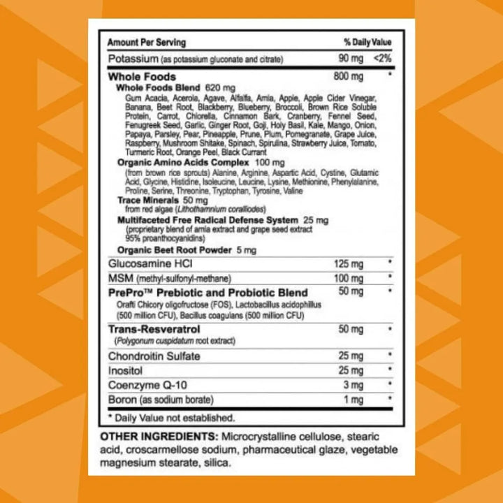 Cada tableta está cargada con ingredientes naturales y enteros, cuidadosamente seleccionados para ofrecerte una nutrición completa. Con un valor ORAC de 160,000, este producto no solo te ayuda a cubrir tus necesidades diarias de vitaminas y minerales, sino que también combate el estrés oxidativo, protegiendo tus células y promoviendo una salud radiante.