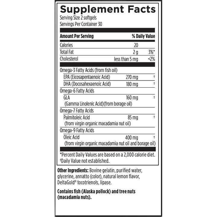Imagina un suplemento que no solo nutra tu cuerpo, sino que también te brinde la energía y vitalidad que necesitas cada día. Nuestro Complejo Omega 3-6-7-9 está diseñado para quienes buscan una solución integral para su bienestar, combinando lo mejor de los aceites de pescado salvaje, borraja y macadamia en una fórmula clínicamente respaldada.