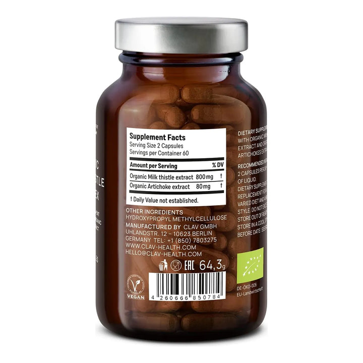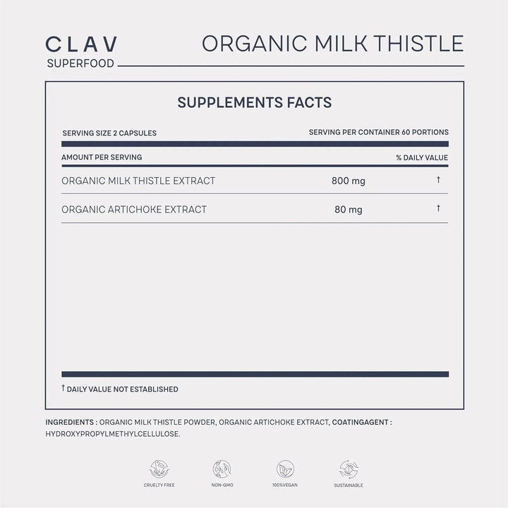 ¿Te sientes cansado, hinchado o con digestiones pesadas? Tu hígado podría estar pidiendo ayuda. Descubre cómo nuestro Complejo Orgánico de Extracto de Cardo Mariano y Alcachofa puede revitalizar tu bienestar desde dentro. Con 400 mg de cardo mariano rico en silimarina y 40 mg de alcachofa por cápsula, este suplemento es tu aliado para una desintoxicación profunda y un soporte hepático excepcional.