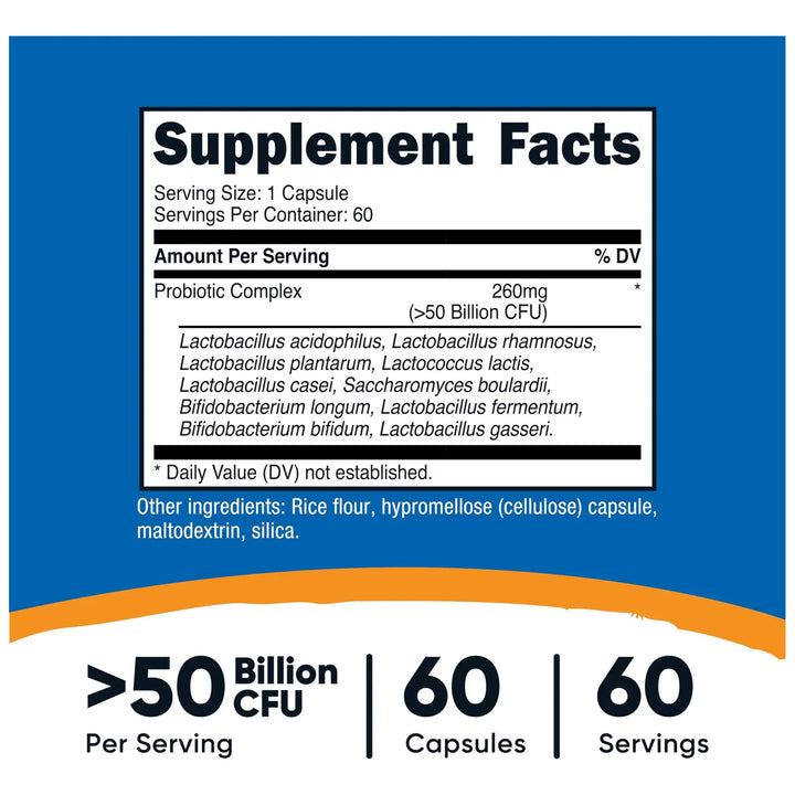 Imagina despertar cada mañana con energía, sintiéndote ligero y sin preocupaciones digestivas. Este probiótico de alta potencia no solo ayuda a regular tu flora intestinal, sino que también fortalece tu sistema inmunológico, gracias a sus 50 mil millones de UFC por cápsula. ¡Es como un ejército de bacterias buenas trabajando para ti!
