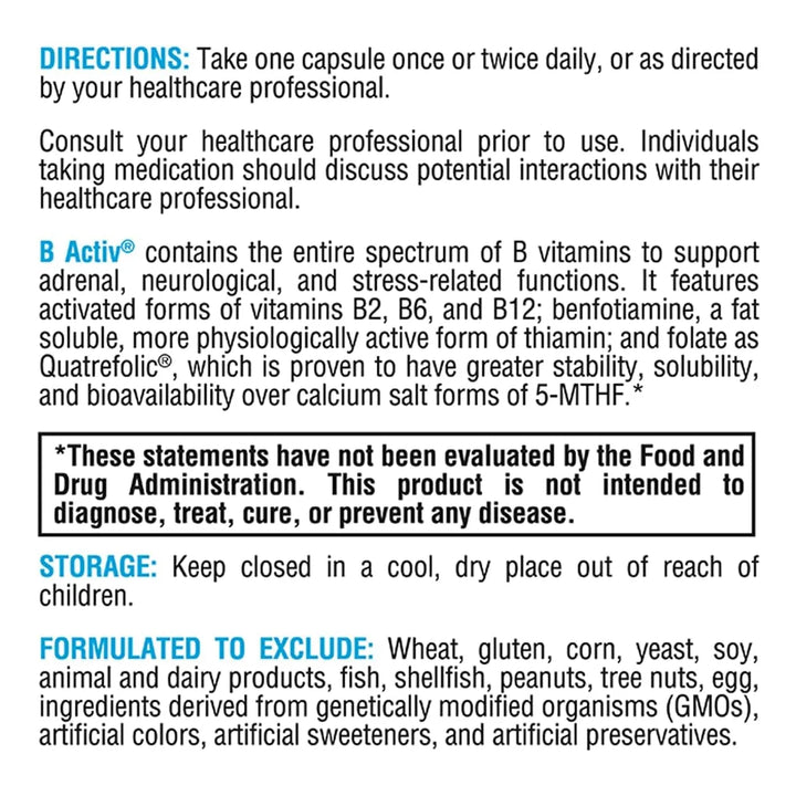 ¿Sientes que tu energía no es la misma de antes? ¿Te cuesta mantener un estado de ánimo equilibrado o sufres de estrés constante? El Complejo de Vitamina B Activ con Benfotiamina, Metilfolato y Biotina es la solución que tu cuerpo está esperando. Diseñado para quienes buscan un apoyo real en su día a día, este suplemento no solo te da energía, sino que también cuida de tu corazón, sistema nervioso y bienestar emocional.