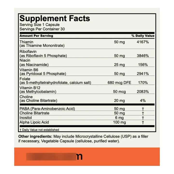 Este no es otro suplemento genérico. Es una mezcla científicamente equilibrada de vitaminas B esenciales como tiamina, riboflavina, niacina, B6, folato y B12, trabajando en sinergia para apoyar tu cuerpo donde más lo necesita. ¿El resultado? Una versión más resistente, enfocada y llena de energía de ti mismo.