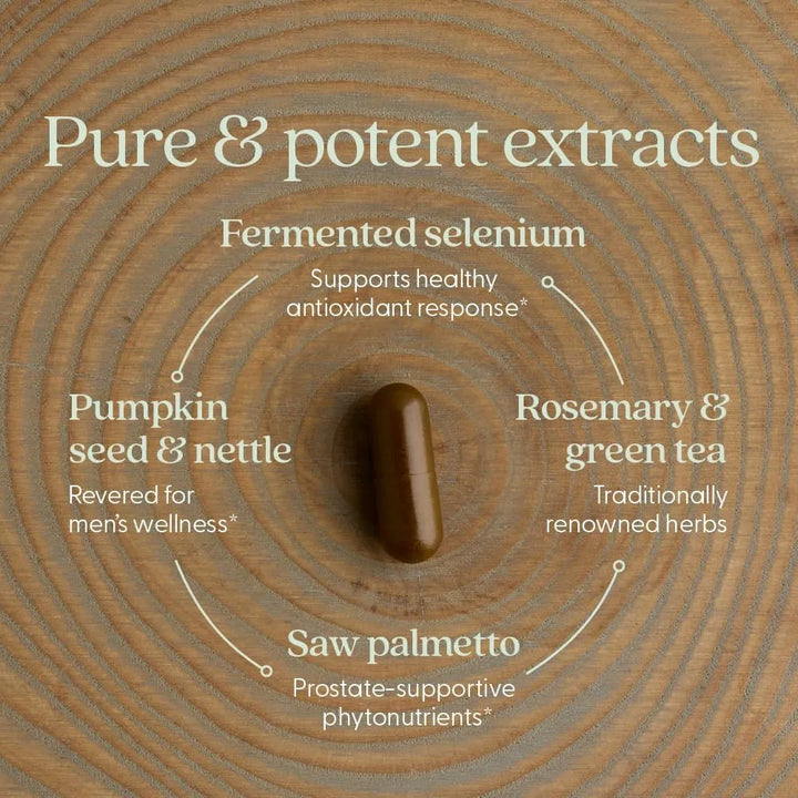 Imagina empezar tu día con energía, sin interrupciones nocturnas y con la seguridad de que tu próstata está recibiendo el cuidado que necesita. Nuestra fórmula clínicamente eficaz combina Saw Palmetto, conocido por sus beneficios prostáticos, y Selenio, un poderoso antioxidante que protege tu cuerpo desde dentro. Además, está enriquecido con superalimentos como aceite de semillas de calabaza y ortiga, seleccionados para ofrecerte lo mejor de la naturaleza.