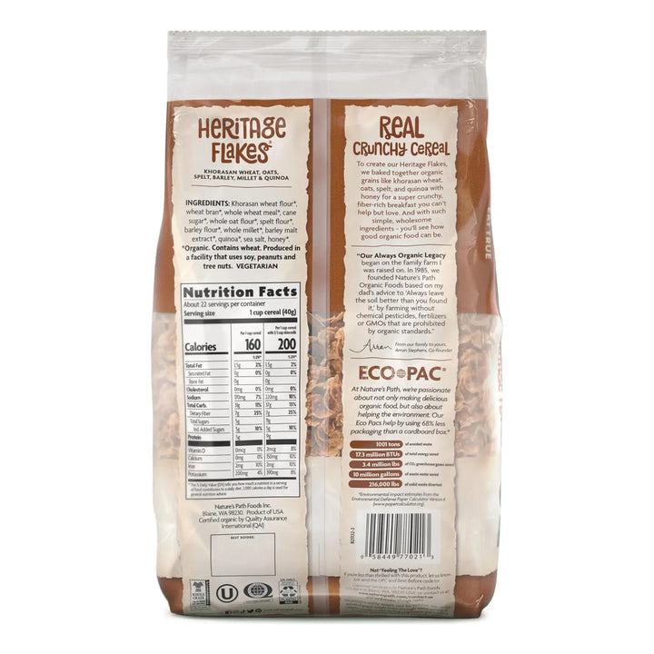 Imagina empezar tu día con un cereal que no solo es delicioso, sino también nutritivo y respetuoso con el medio ambiente. Los Copos De Cereal Orgánicos Heritage de Nature's Path son la elección perfecta para quienes buscan un desayuno saludable, lleno de energía y con un sabor inigualable. Cada bocado es una explosión de nutrientes, gracias a su mezcla única de 6 granos antiguos, endulzados orgánicamente y ligeramente aromatizados con sal marina y miel. ¡Tu cuerpo y tu paladar lo agradecerán!