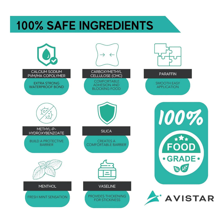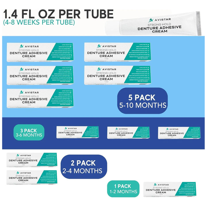 Con ingredientes naturales de grado alimenticio y libre de zinc y flúor, esta crema adhesiva no solo es segura para tu salud bucal, sino que también ofrece un refrescante sabor a menta. Olvídate de las irritaciones y molestias comunes con otros adhesivos; nuestra fórmula avanzada reduce la irritación de las encías hasta cinco veces más, permitiéndote disfrutar de una vida activa sin limitaciones.