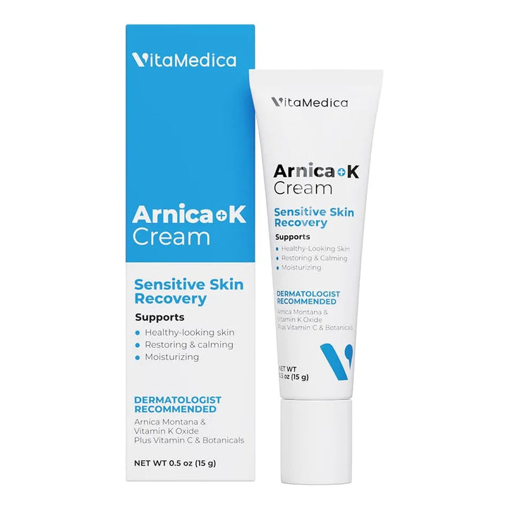 ¿Cansado de moretones que tardan días en desaparecer? ¿Buscas una solución natural para rejuvenecer tu piel después de procedimientos estéticos o lesiones? La Crema de Árnica y Vitamina K de VitaMedica es tu aliado perfecto. Formulada con ingredientes 100% naturales como árnica montana, óxido de vitamina K1 y vitamina C, esta crema no solo acelera la recuperación de la piel, sino que también hidrata y nutre las áreas más sensibles, como el contorno de ojos.