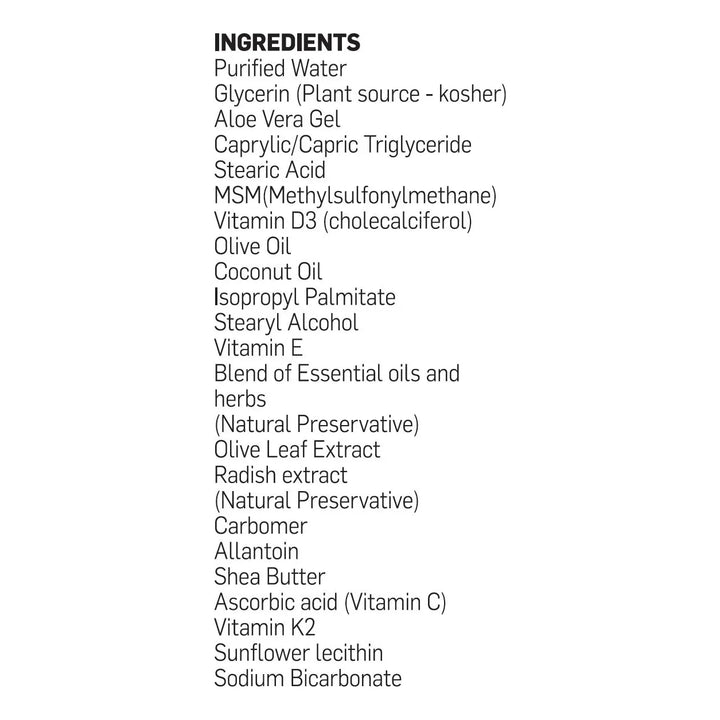 Imagina despertar cada día con más energía, un cabello más fuerte y una piel radiante. Con nuestra crema enriquecida con vitamina K2 y extracto de hoja de olivo, no solo repones tus niveles de vitamina D, sino que también fortaleces tu cuerpo desde adentro. Olvídate de las cápsulas difíciles de tragar o los suplementos que no se absorben bien. Nuestra crema de aplicación tópica garantiza una absorción rápida y efectiva, dándote resultados visibles en poco tiempo.