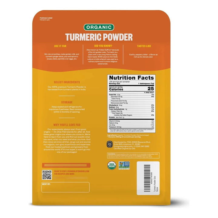 - 🔄 Bolsa resellable: Mantén la frescura y el aroma de la cúrcuma por más tiempo, lista para usar cuando la necesites.