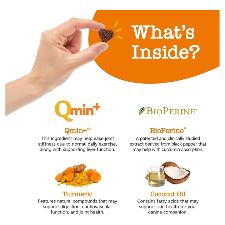 La cúrcuma, un superalimento ancestral, combinada con ingredientes de alta calidad como BioPerine y aceite de coco, no solo alivia sus molestias, sino que fortalece su sistema inmunológico y digestivo. Cada masticable es una dosis de amor y cuidado, formulada para perros de todas las razas y edades.