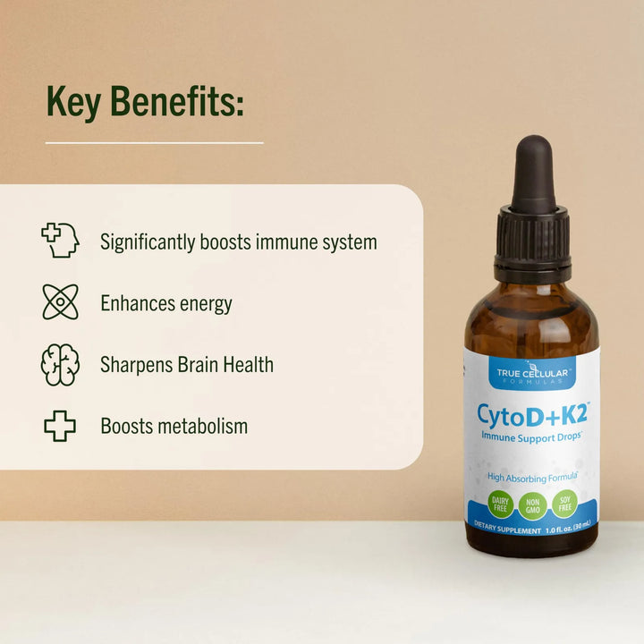 ¿Sientes que tu energía no es la misma de antes? ¿Te preocupa mantener tus huesos fuertes y tu sistema inmunológico en óptimas condiciones? Imagina un producto diseñado por científicos, formulado para potenciar tu bienestar desde la primera gota. CytoD+K2 no es solo un suplemento, es tu aliado para una vida más saludable y vibrante.
