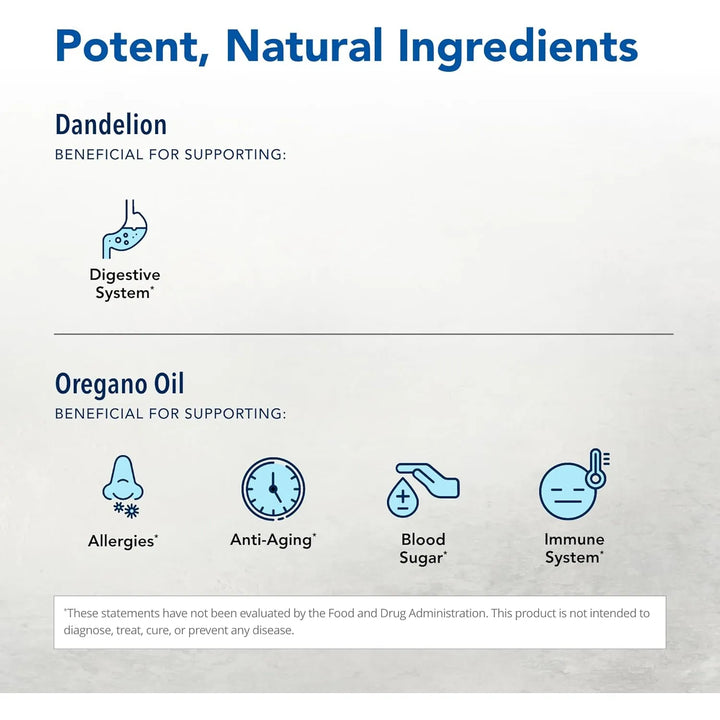 El extracto crudo de diente de león actúa como un tónico natural para el hígado, estimulando la producción de bilis y facilitando la eliminación de toxinas. El aceite de orégano, conocido por sus propiedades antimicrobianas, complementa este proceso apoyando la salud intestinal. Juntos, estos ingredientes trabajan sinérgicamente para: