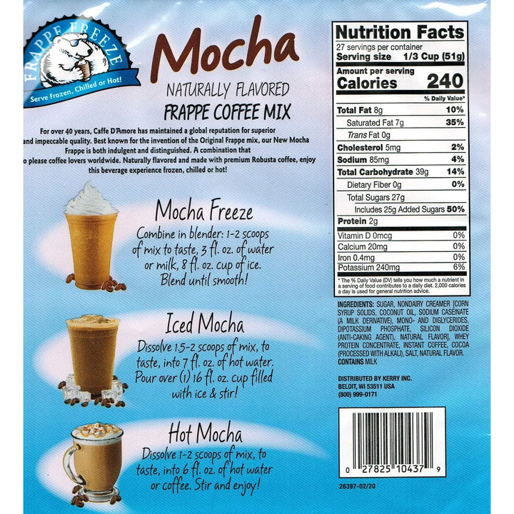 - Mezcla 2 cucharadas de DaVinci Gourmet Frappe Freeze Mocha con 8 onzas de agua o leche fría.