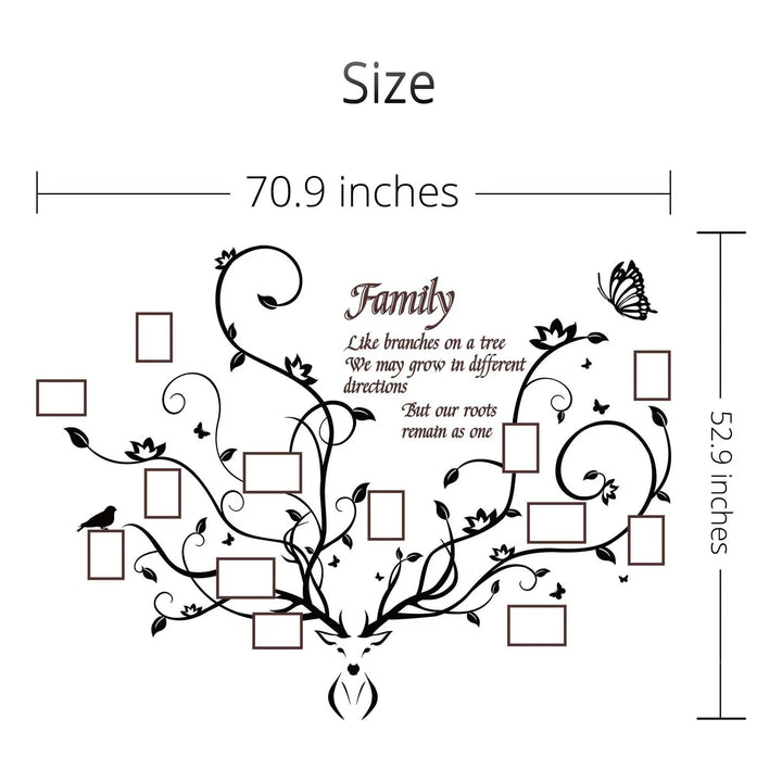 ¿Cansado de decoraciones genéricas que no reflejan tu personalidad? Este árbol genealógico con cabeza de ciervo y citas inspiradoras es la solución. Su instalación es tan sencilla como despegar y pegar, gracias a su plantilla de tamaño completo y adhesivo ultra resistente. No más complicaciones ni gastos excesivos en marcos tradicionales. Aquí tienes durabilidad, estilo y facilidad en un solo producto.