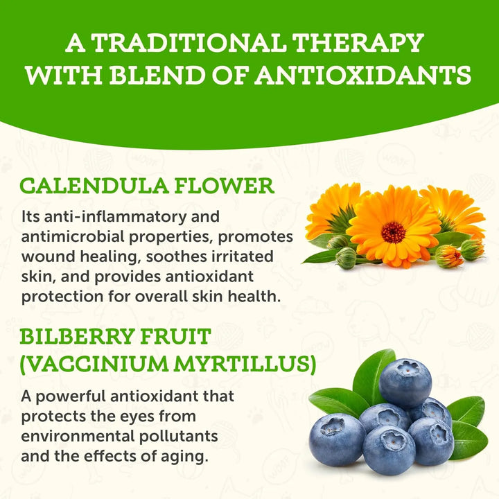 Greg Tilford, fundador de esta fórmula y una autoridad en el cuidado natural de mascotas, ha trabajado con más de 600 veterinarios para crear una solución que combina lo mejor de la naturaleza. La caléndula y el arándano no solo alivian irritaciones, sino que también protegen contra el envejecimiento prematuro y los efectos dañinos del ambiente. ¿Sabías que la luteína, presente en estos ingredientes, es clave para mantener una visión saludable? Tu mascota merece esa protección, sin químicos agresivos.