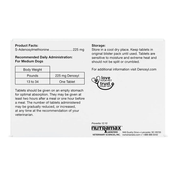Pero eso no es todo. Denosyl no solo actúa como un escudo para el hígado; también apoya la función cognitiva de tu mascota. ¿Has notado que tu compañero parece menos activo o desorientado? La fórmula de Denosyl ayuda a mantener su mente ágil, gracias a sus propiedades neuroprotectoras. Además, al ser producido por Nutramax, la compañía líder en suplementos veterinarios, tienes la garantía de un producto seguro, efectivo y fabricado con los más altos estándares de calidad. No dejes que los problemas hepáticos roben la vitalidad de tu mascota. Actúa hoy.