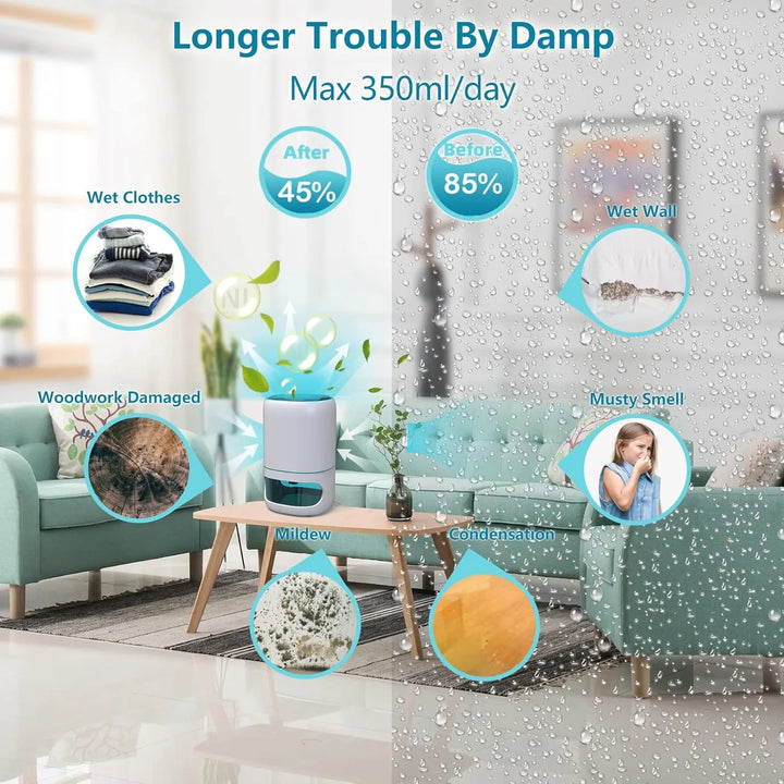 - 💧 Elimina hasta 11 oz de humedad al día, protegiendo tu salud y pertenencias de los daños por humedad.