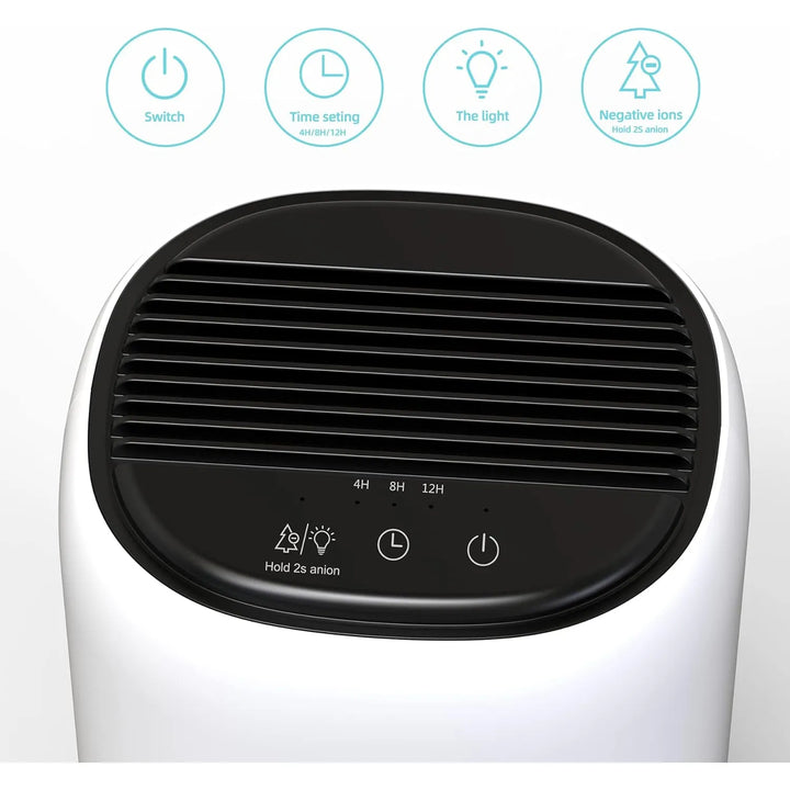 Este innovador dispositivo combina tres funciones esenciales en un solo equipo: deshumidificación, purificación de aire y generación de iones negativos. Gracias a su tecnología Peltier, trabaja en silencio (menos de 30 dB) para no interrumpir tu descanso, mientras sus luces LED de 7 colores crean un ambiente relajante que mejora tu calidad de sueño. ¡Dile adiós al aire viciado y húmedo!