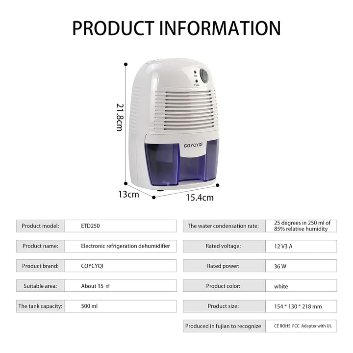 • Deshumidificador de alta eficiencia: el deshumidificador eléctrico COYCYQI con tanque de capacidad de 17 onzas, se adapta a un área de aproximadamente 215 pies cuadrados, funciona en condiciones de RH85% tiene un efecto significativo y ahorro de energía con una potencia de 36 W/hora, lo que significa una deshumidificación más eficiente