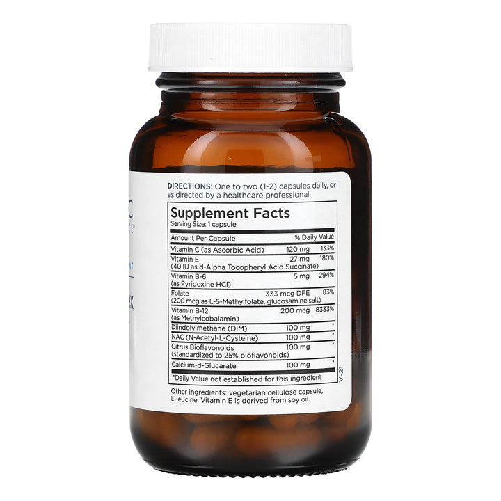 Este suplemento único combina 100 mg de diindolilmetano (DIM), un metabolito clave derivado de vegetales crucíferos, con N-Acetil L-Cisteína (NAC), un poderoso antioxidante que apoya la desintoxicación. Pero no termina ahí: enriquecido con metilfolato, vitaminas B12, B6, C, E y calcio D-glucarato, cada cápsula es un cóctel de nutrientes que trabajan en sinergia para ayudarte a sentirte mejor desde adentro hacia afuera.