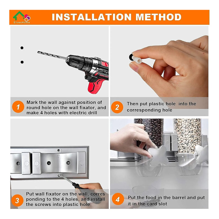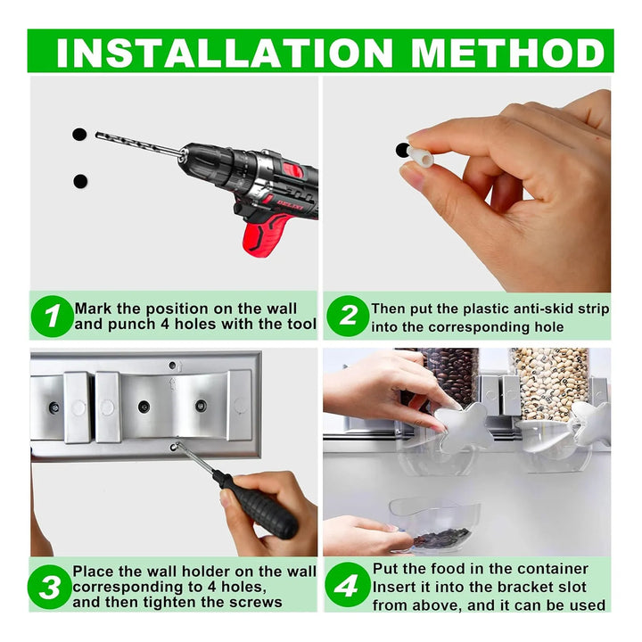 ¿Cansado del desorden en tu cocina? ¿Quieres ahorrar tiempo y dinero mientras mantienes tus alimentos frescos y organizados? Descubre el dispensador de alimentos montado en pared que está revolucionando la forma de almacenar cereales, frutos secos, café y más. Diseñado para simplificar tu vida, este producto combina funcionalidad, estilo y durabilidad en un solo paquete.