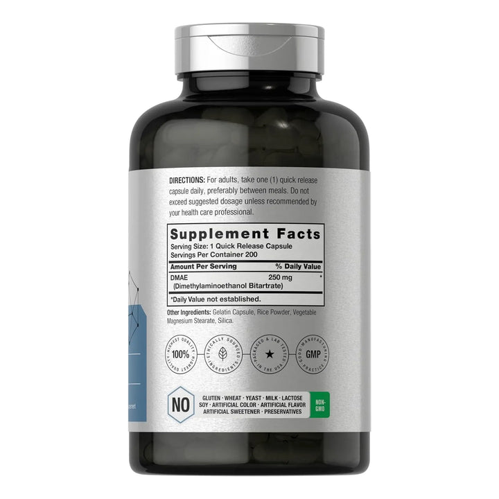 Potencia precisa: 250 mg de DMAE Bitartrato por cápsula para dosificación exacta 💊