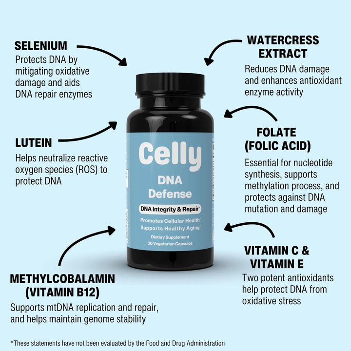 ¿Te preocupa el envejecimiento prematuro o la salud de tus células? Imagina un suplemento diseñado para proteger y reparar tu ADN desde adentro, respaldado por ingredientes científicamente probados. DNA Defense no es solo otra vitamina, es tu aliado para un envejecimiento saludable y una vida llena de energía.