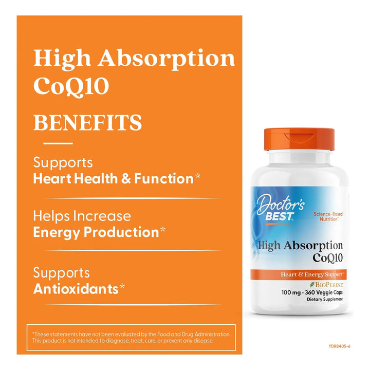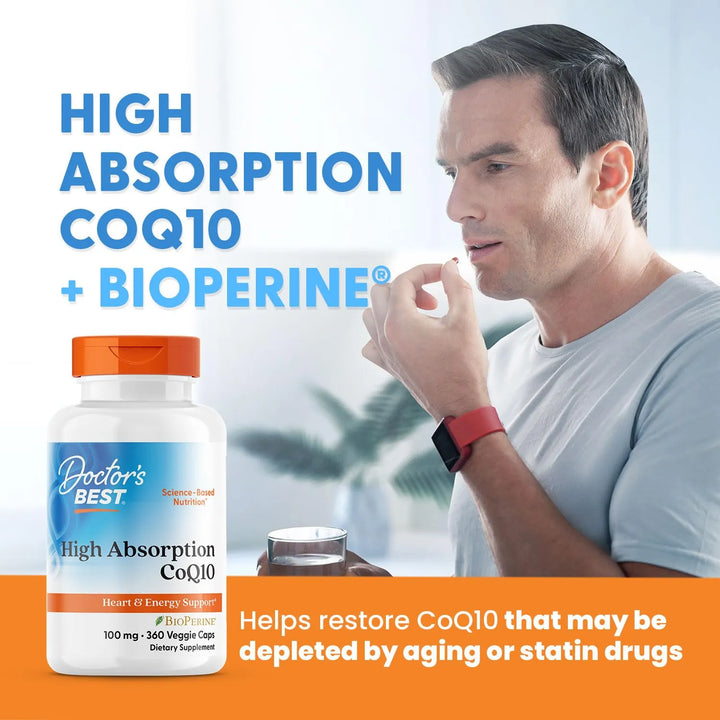 Imagina despertar cada día con la energía necesaria para afrontar tus retos, sabiendo que tu corazón está protegido y tus células están recibiendo el apoyo que necesitan. Con el CoQ10 de Doctors Best, formulado con Bioperina para una absorción superior, puedes recuperar esos niveles óptimos de energía y bienestar que creías perdidos. Especialmente si tienes más de 40 años o usas medicamentos de estatina, este suplemento es tu aliado para contrarrestar la disminución natural de CoQ10 en tu cuerpo.