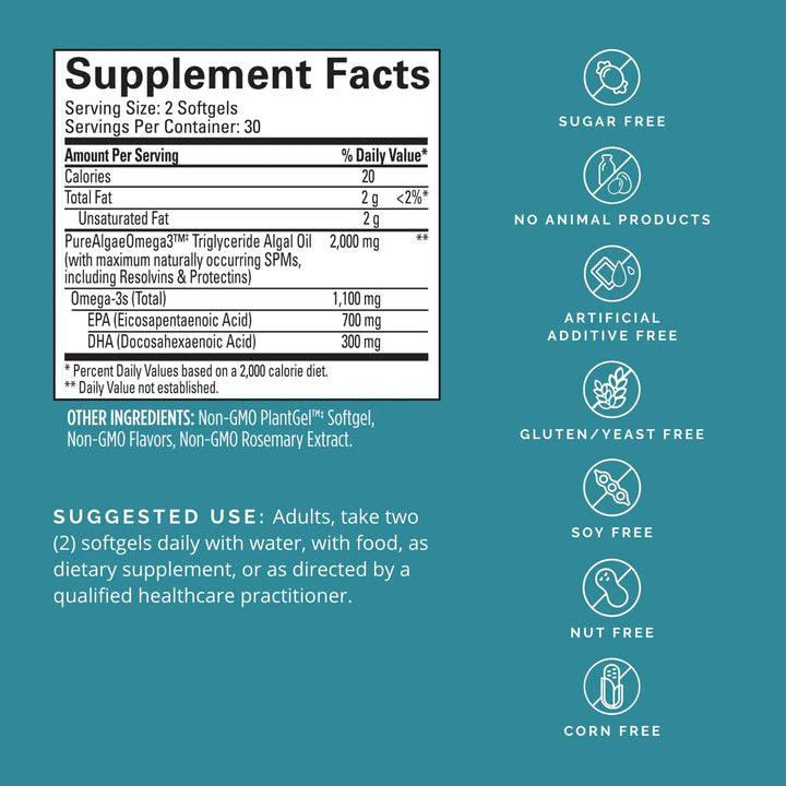 Imagina despertar cada día con una claridad mental incomparable, capaz de tomar decisiones más rápidas y recordar todo lo que importa. Este suplemento no solo te brinda 1,100 mg de EPA y DHA por dosis, los ácidos grasos esenciales que tu cerebro y corazón necesitan, sino que también es la opción más pura y concentrada disponible en el mercado. Sin gluten, sin OMG y formulado por médicos, es la elección inteligente para quienes buscan lo mejor en nutrición vegana.
