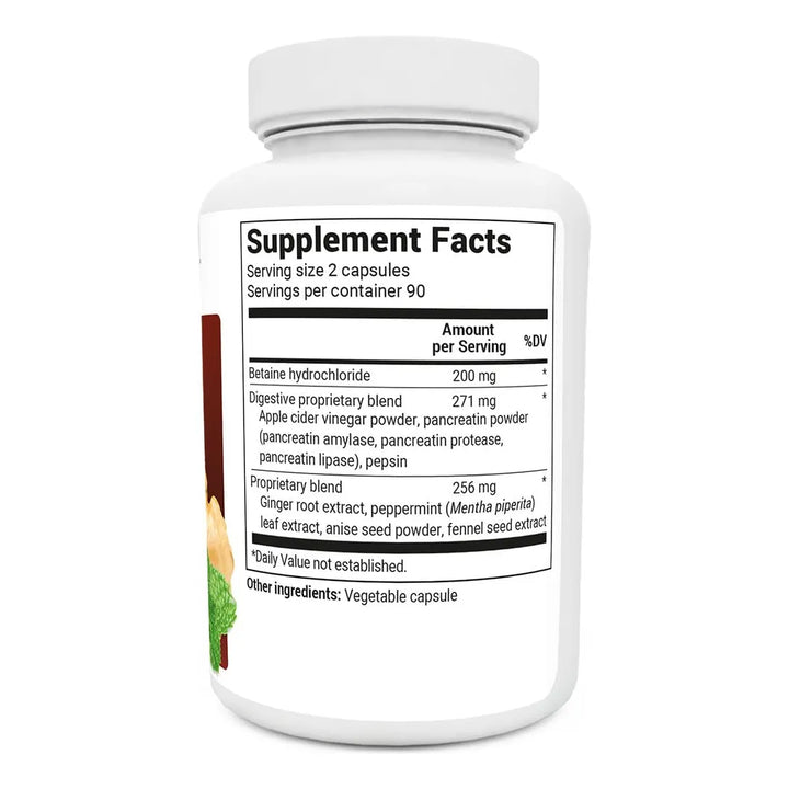 Este suplemento no es solo otra pastilla más. Es una fórmula científicamente respaldada que combina ingredientes de alta calidad como el clorhidrato de betaína HCI, vinagre de sidra de manzana, raíz de jengibre y hoja de menta. Cada cápsula está fabricada en instalaciones certificadas bajo las estrictas normas GMP de EE.UU., garantizando pureza y potencia en cada dosis. ¿Por qué conformarte con soluciones temporales cuando puedes tener una digestión óptima todos los días?