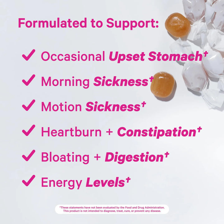 - Toma 1 caramelo cuando sientas náuseas o malestar digestivo.