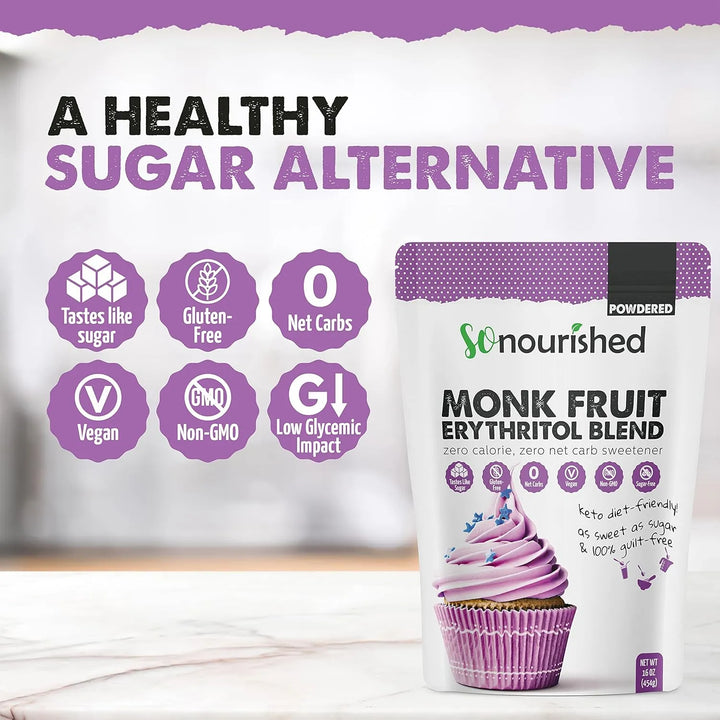 Este edulcorante utiliza la dulzura natural de la fruta de monje, combinada con el eritritol, un alcohol de azúcar que no afecta los niveles de glucosa. Juntos, crean un endulzante que no solo sabe bien, sino que también cuida tu salud.