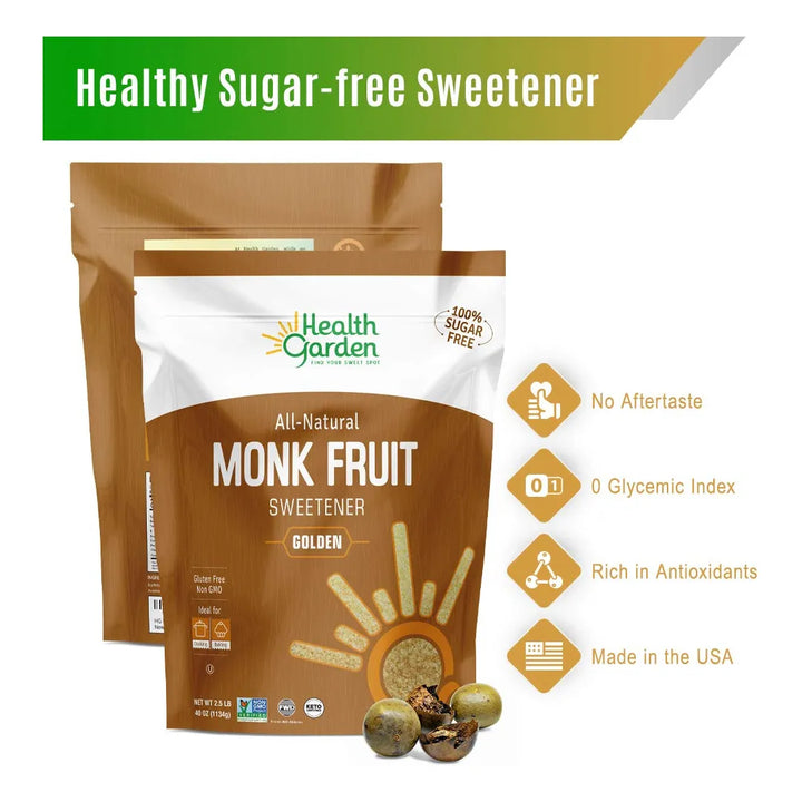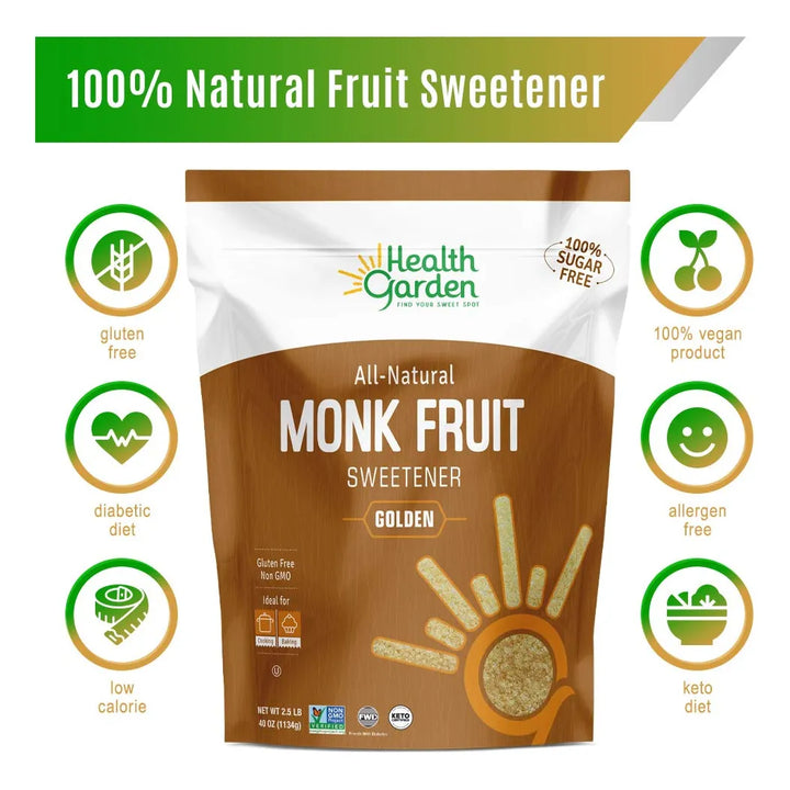 Imagina disfrutar del dulce sabor que tanto amas, sin culpas ni preocupaciones por tu salud. El Edulcorante De Fruta De Monje Dorado de Health Garden es la solución perfecta para endulzar tus días de manera natural, sin azúcar, sin gluten y sin ingredientes modificados genéticamente. ¿Te preocupa el azúcar en tu dieta? Este edulcorante no solo es seguro para diabéticos, sino que también promueve la pérdida de peso y mejora tu salud en general.