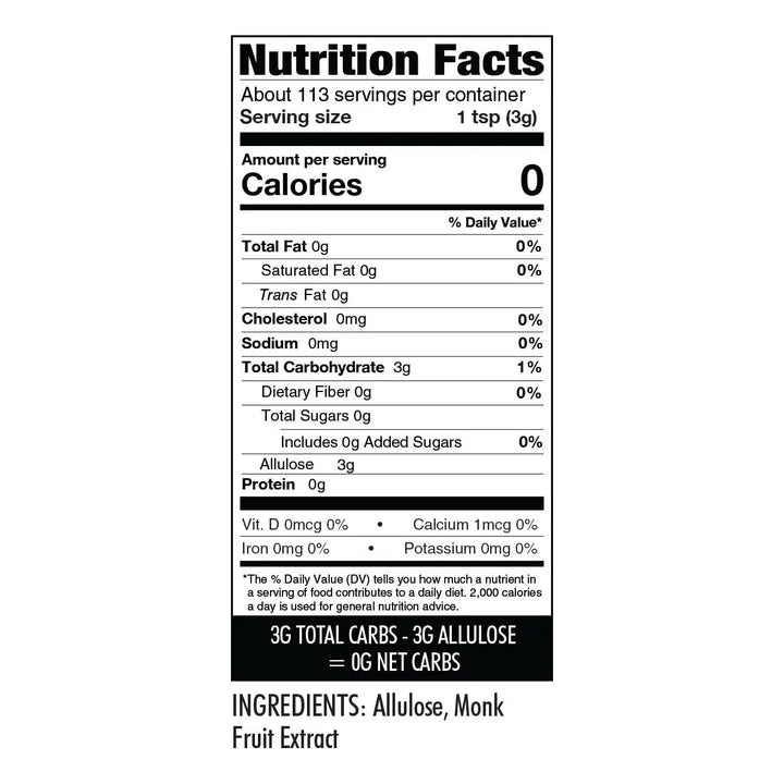 - 🌿 100% natural y sin ingredientes artificiales: Solo extracto de fruta monje y alulosa, sin conservantes, colorantes o alcoholes de azúcar.