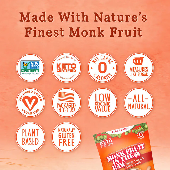 Hecho de la auténtica fruta del monje, conocida en Asia por su dulzor natural, este edulcorante es la elección inteligente para quienes buscan mantener un estilo de vida keto, vegano o simplemente más consciente. Con certificación Keto, verificado por el proyecto No GMO, y aprobado como vegano y kosher, es la opción confiable que tu cuerpo y tu conciencia agradecerán.