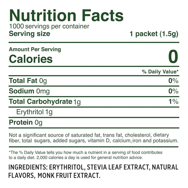 - Equivalente en dulzura a 1.5 cucharaditas de azúcar por paquete 🍯