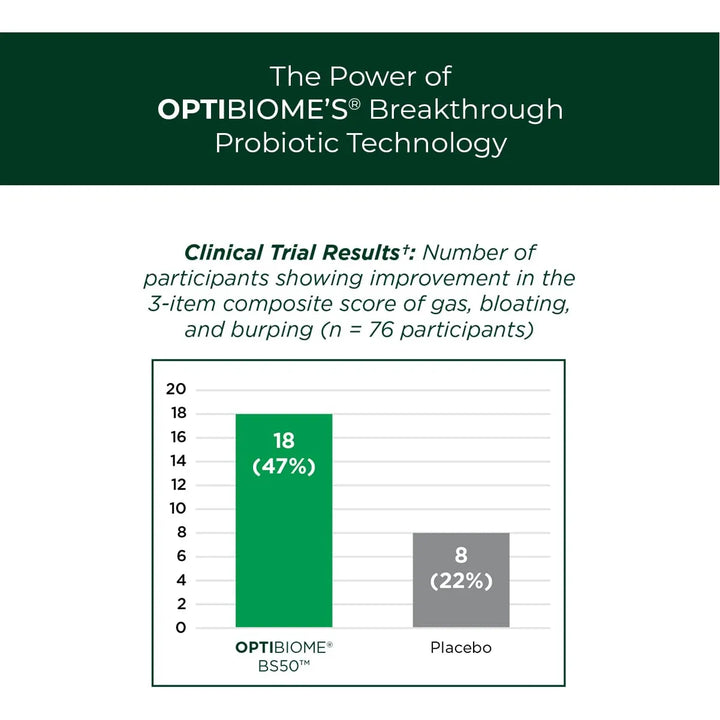 1. Probióticos OptiBiome – Reducen gases y promueven equilibrio intestinal 🌱