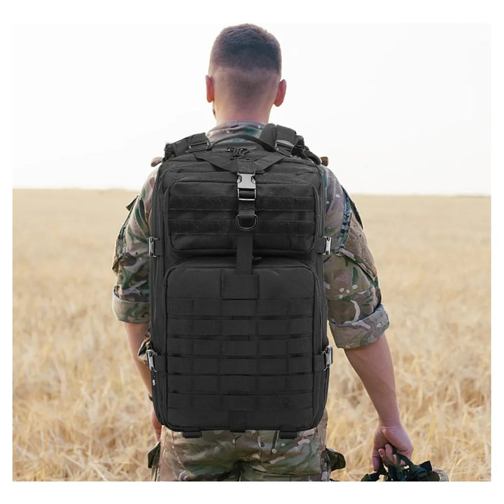 • Versátil con múltiples compartimentos: nuestra mochila militar tiene 2 compartimentos principales grandes, 2 compartimentos pequeños en la parte delantera y 1 compartimento trasero. El compartimento grande tiene una correa elástica para sostener computadoras portátiles o cualquier cosa que no quieras moverte. Cada compartimento tiene un bolsillo de malla o un bolsillo con cremallera para ayudar con la organización. La correa en Y en la parte superior te permite guardar más artículos, como colchoneta o sudadera. Y es mucho más conveniente para poner tus dispositivos en los bolsillos laterales inferiores.