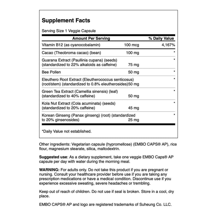- Combinación sinérgica: Vitamina B-12 + extractos botánicos para un efecto potenciado. ⚡