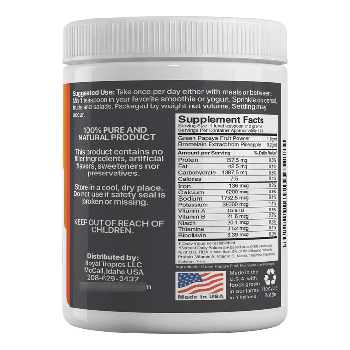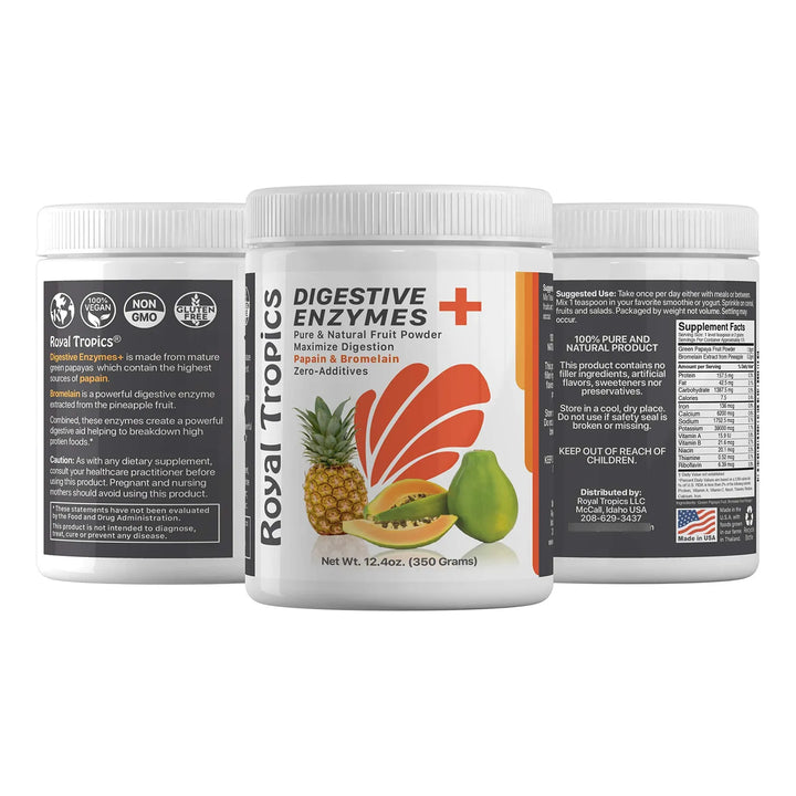 La Bromelina, extraída de la piña, es una enzima proteolítica que ayuda a descomponer las proteínas, mientras que la Papaína de la papaya verde facilita la digestión de carbohidratos y grasas. Juntas, no solo optimizan tu proceso digestivo, sino que también reducen la inflamación y apoyan la salud intestinal. Es como tener un equipo interno de expertos trabajando para que te sientas ligero y lleno de energía después de cada comida.