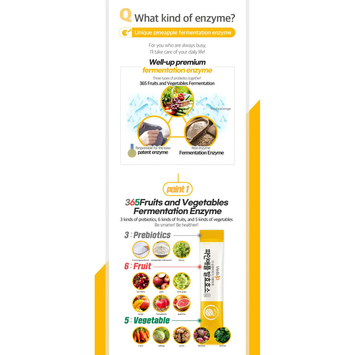 - 🌿 Ingredientes Naturales: Formulado con enzimas de fermentación Well Up para una digestión suave y efectiva.