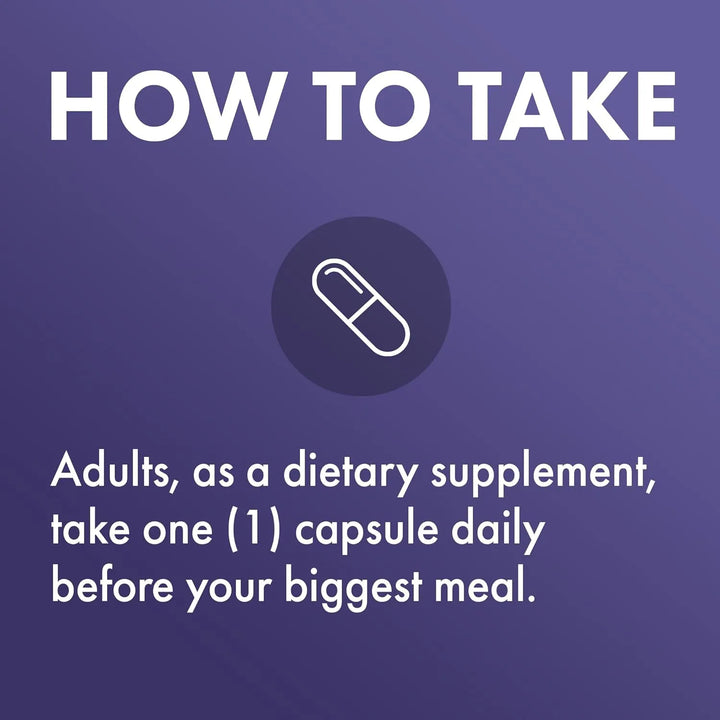 - Toma 1 cápsula con cada comida principal (desayuno, almuerzo y cena).